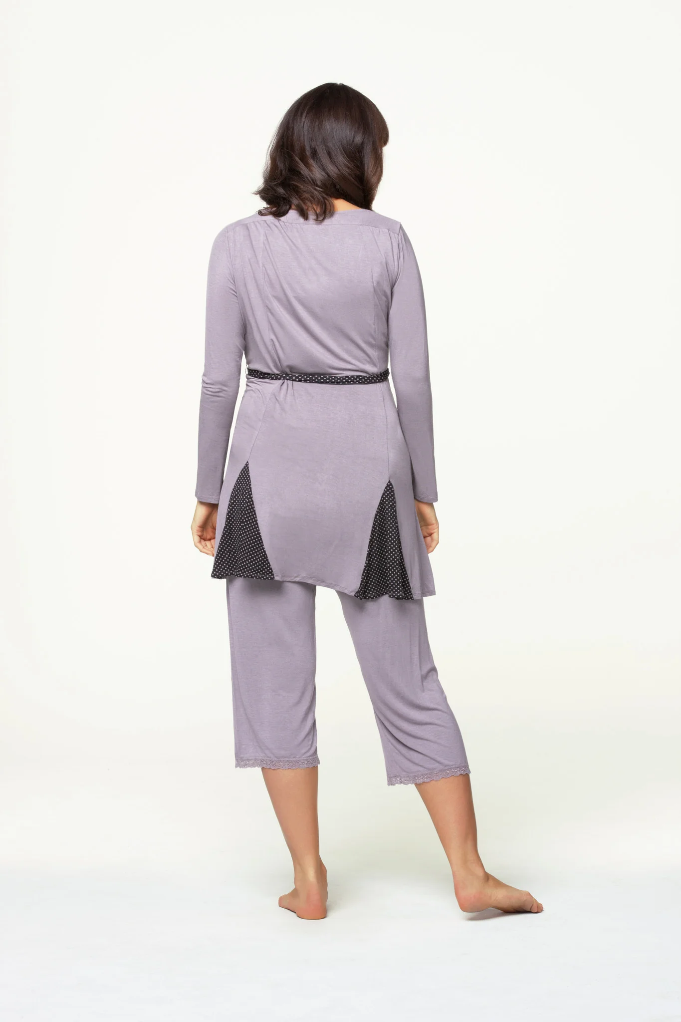This versatile and stunning Apple Crumble grey wrap robe by Cake Maternity is a lovely compliment to the existing nightwear. A stylish & comfortable accompaniment in your hospital bag or worn around the house, its sure to become your favourite. Delivering sophistication and comfort in delicate mushroom-grey modal fabric, this robe will have you wrapped up wanting more with it's black and grey polka dot detailing!