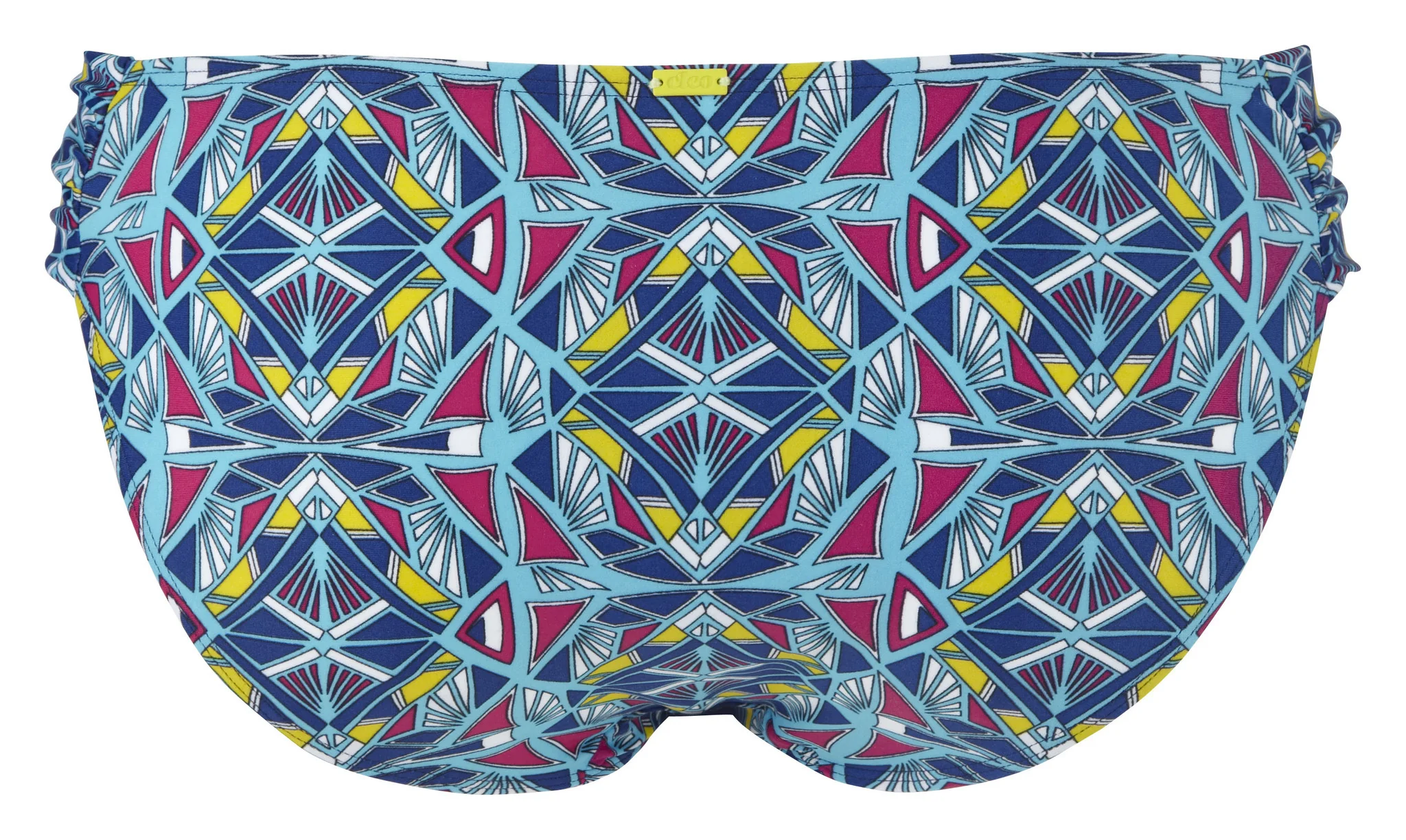 In a fun aztec print the Jecca gathered bikini brief bottom from Cleo Swim by Panache is perfect for the beach or pool side. Jecca is designed to flatter with gathered sides and full rear coverage.