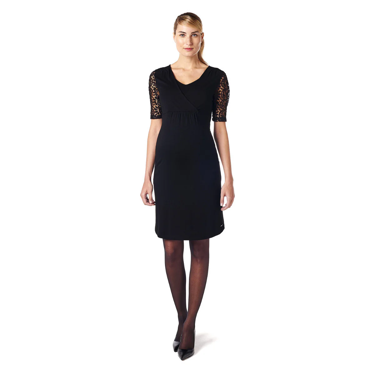 This beautiful nursing dress by Esprit has delicate lace sleeves and is pleated from the waist down. The dress can be worn during your pregnancy and after your baby is born and is perfect for special occasions and holiday parties. The incorporated top with wrap and nursing panel makes the dress extra comfortable and practical.